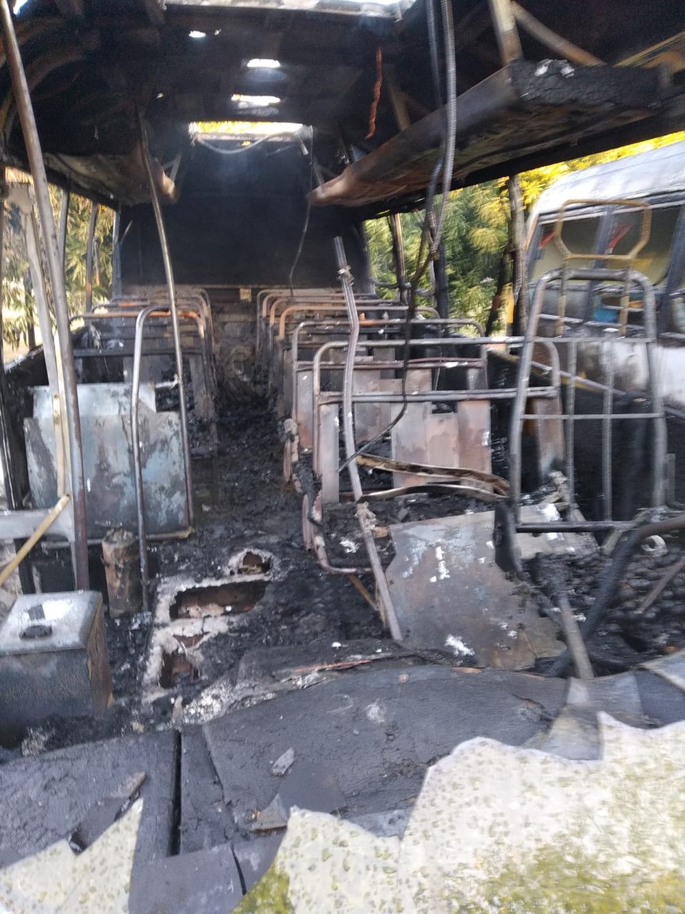 | Ônibus atingidos pelo incêndio em Aquidauana (MS) — Foto: Corpo de Bombeiros / Reprodução |
