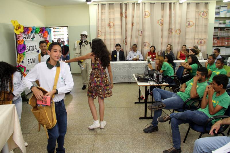 No ato, os alunos da escola, sob a coordenação da professora Mestre Tatiane Azambuja, realizaram a apresentação teatral “Telejornal – Combate a Dengue” aos presentes. Na peça, que é uma adaptação do texto de Maria Miranda de Souza, os atores mirins simularam a bancada de um telejornal com direito a ancoras e VT’s produzidos pelos próprios alunos. O elenco foi integrado pelos alunos, Kauã Tavares, Nicolly Sthéfany Tenório, Jheany Coimbra, Crystian Salina e Luiz Henrique. |