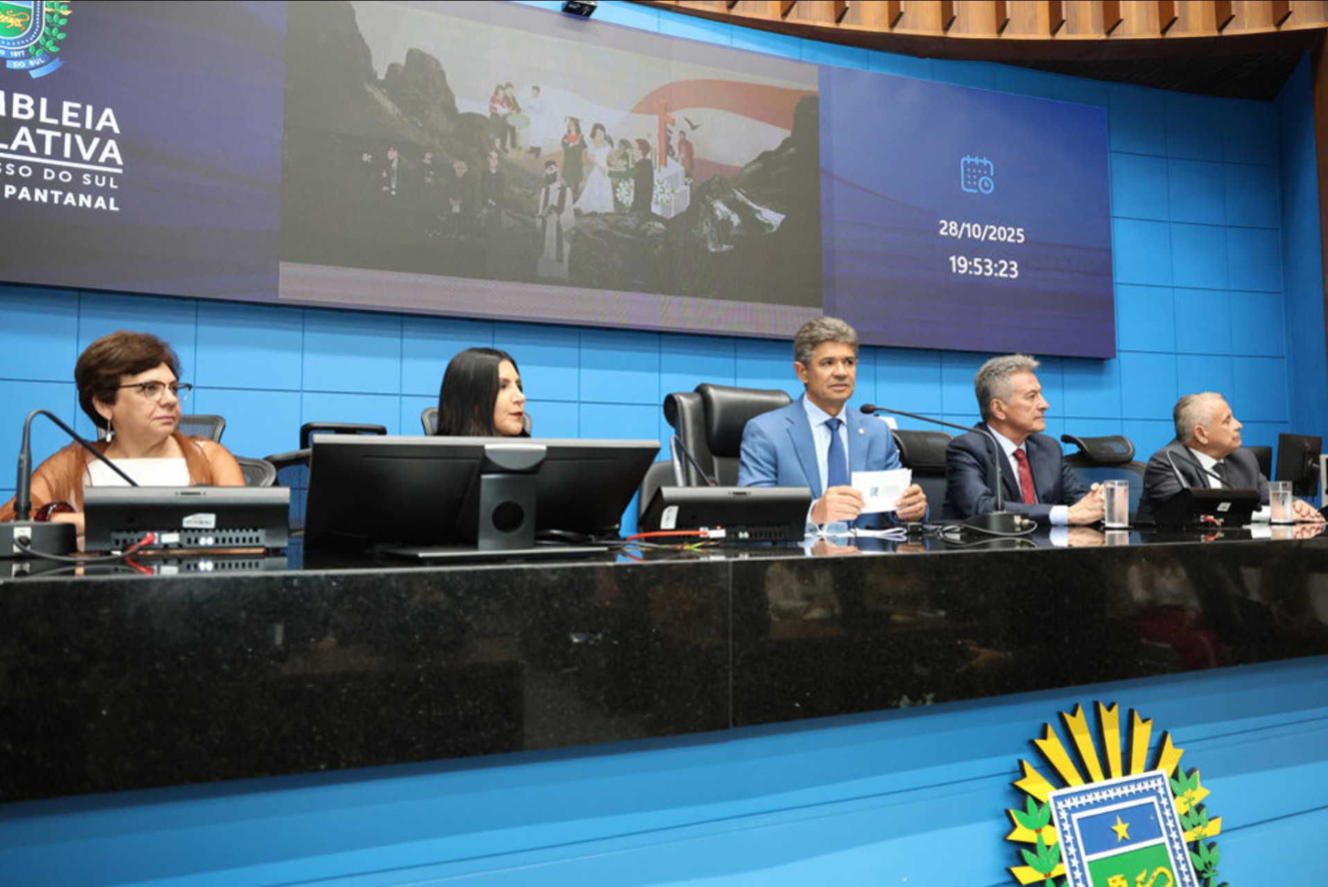 A Assembleia Legislativa de Mato Grosso do Sul (ALEMS) realizou, na noite desta terça-feira (28), uma Sessão Solene em Comemoração ao Dia do Cerimonialista, reunindo autoridades, homenageados e familiares no Plenário Deputado Júlio Maia. A cerimônia foi uma proposta do deputado Professor Rinaldo Modesto (Podemos), autor da Lei Estadual nº 3.543/2008, que instituiu a data no Calendário Oficial de Eventos do Estado.