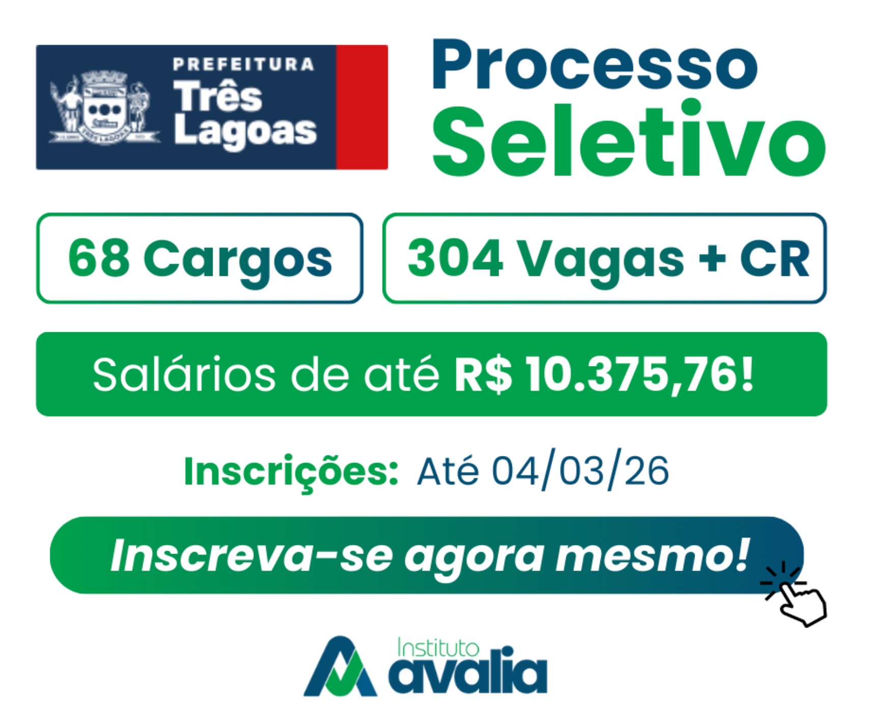 Prefeitura de Três Lagoas abre processo seletivo com 304 vagas e cadastro de reserva