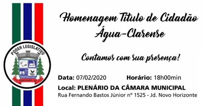 ÁGUA CLARA| Câmara realizará entrega de Títulos de Cidadão Água-Clarense; veja quem serão os homenageados