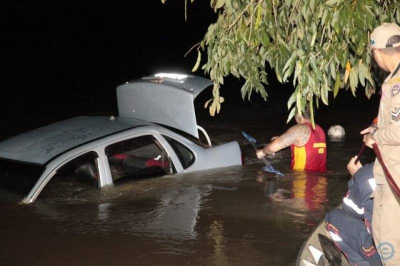Motorista ultrapassa final de rua e vai parar dentro de rio