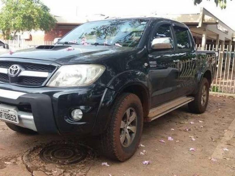 Assaltantes trocam tiros com a polícia e abandonam Hilux e moto na estrada